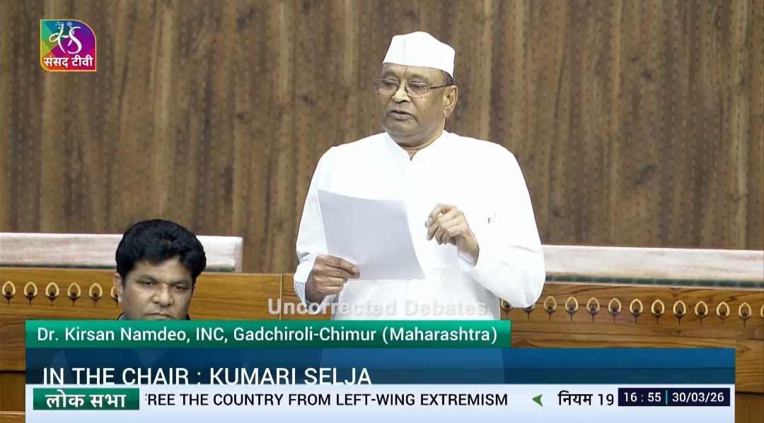 गडचिरोली–चिमूर लोकसभा क्षेत्राचे खासदार डॉ. नामदेव किरसान यांनी लोकसभेत नियम १९३ अन्वये ‘नक्षलवाद’ विषयावरील चर्चेत सहभागी होत आपल्या मतदारसंघातील आदिवासी बांधवांच्या ज्वलंत प्रश्नांकडे केंद्र सरकारचे लक्ष वेधले.